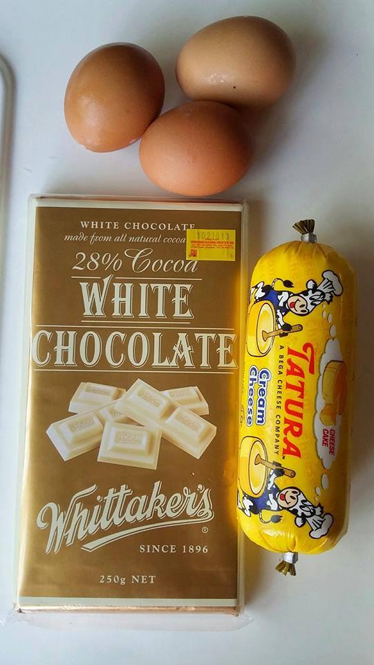 3. Masukkan cream cheese ke dalam coklat putih yang telah dcairkan tadi. Kacau adunan sampai sebati.