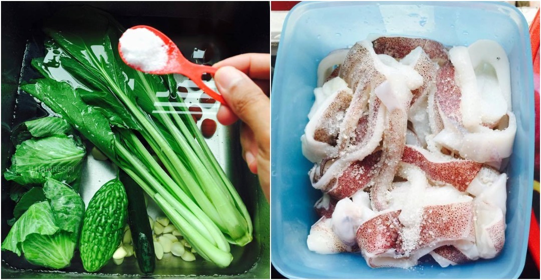 2. Tambahkan garam untuk mencuci bahan kimia yang yang telah disembur pada sesetengah sayur untuk elakkan serangga perosak. Sementera itu bersihkan juga sayur tersebut.