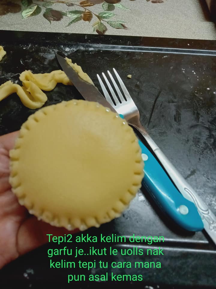 - Tepi-tepi tu boleh kelim dengan garfu je.