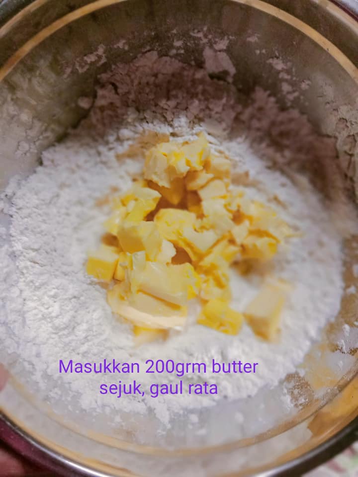 - Adunan akan menjadi macam ni. Kemudian masukkan telur.