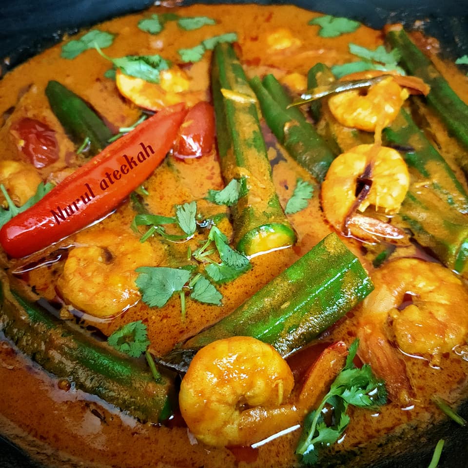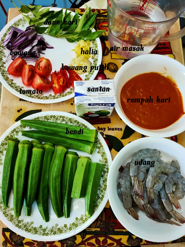 Satu menu ini sudah mencukupi kerana telah digabungkan lauk (udang) dan sayur (bendi) bersama.
